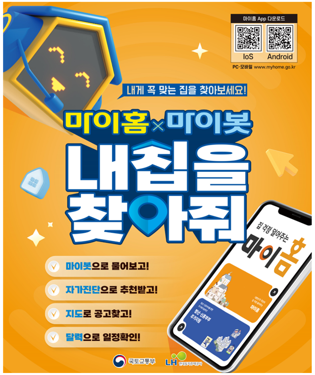인공지능(AI) 상담 챗봇과 맞춤형 모집공고 추천 서비스 구축 등으로 '마이홈포털'이 한층 더 똑똑해집니다.