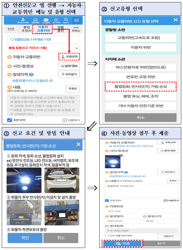 안전신문고 앱 '자동차·교통위반' 신고방법