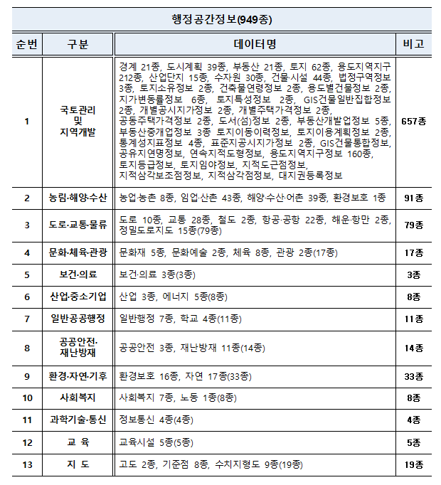 ㅇ (탑재DB) 기반공간정보(6종)와 행정공간정보(949종) 등 총 955종의 다양한 국가 공간정보를 웹 서비스로 제공