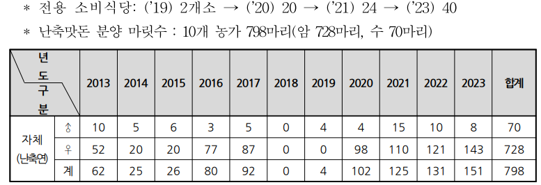 현재 양돈과 직접 보급 및 민간종돈장 육성을 통한 이원화 체계로 보급 중에 있습니다.