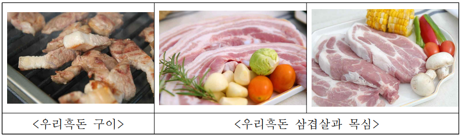 ‘우리흑돈’은 국립축산과학원에서 복원한 재래돼지(축진참돈)와 자체 개발한 개량종(축진듀록)을 활용해 2015년에 개발됐습니다. 수입 씨돼지(종돈)가 아닌 국내 품종만으로 개발한 유일한 흑돼지입니다. 근내지방이 4.3%(재래종 4.5%)로 일반 돼지(3%)보다 1.3%포인트 정도 높고 탄력 있는 육질과 단단한 지방이 특징이며, 육즙이 풍부하고 고소한 맛이 납니다. 전문가 미식 평가에서 일반 돼지고기에 비해 고기 색이 좋고 향미가 뛰어나다는 평가를 받았습니다.