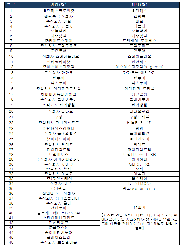 참여 온라인 여행사 목록은 아래 참고하세요~