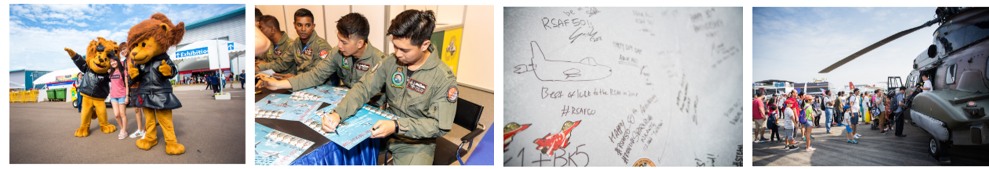 가족과 항공 애호가들은 싱가포르 에어쇼의 사랑스러운 마스코트 레오와 레오넷을 만나볼 수 있습니다. 이 친근한 듀오와 함께 즐거운 시간을 보내고 사진도 찍으며 가족 간의 추억을 남길 수 있는 잊지 못할 주말을 보내세요.