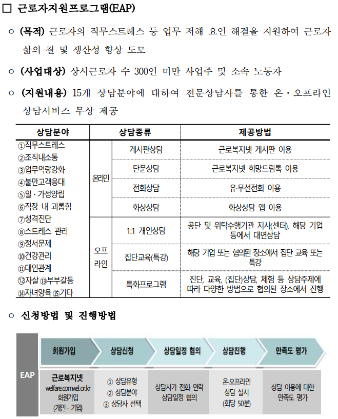 근로복지공단 근로자지원프로그램(EAP) 요약