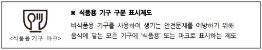시험대상 전 제품은 제품명, 용량, 재질, 원산지, 제조사, 수입·판매원, 제조연월, 취급 시 주의사항, ‘식품용 기구 마크’를 표기하여 기준에 적합하였습니다. 텀블러는 식품 용기로 분류되므로 「식품 등의 표시·광고에 관한 법률」에 의한 표시사항을 준수해야 합니다. 또한, 제품의 외부 포장박스 또는 제품에 라벨형태로 부착되어 있어 개별 식별이 가능하였습니다.