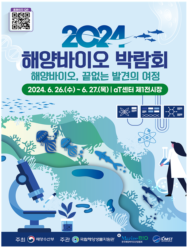 해양수산부는 6월 26일(수)부터 27일(목)까지 서울 양재동 aT센터에서 ‘해양바이오, 끝없는 발견의 여정’이라는 주제로 ‘2024 해양바이오 박람회’(이하 박람회)를 개최합니다.